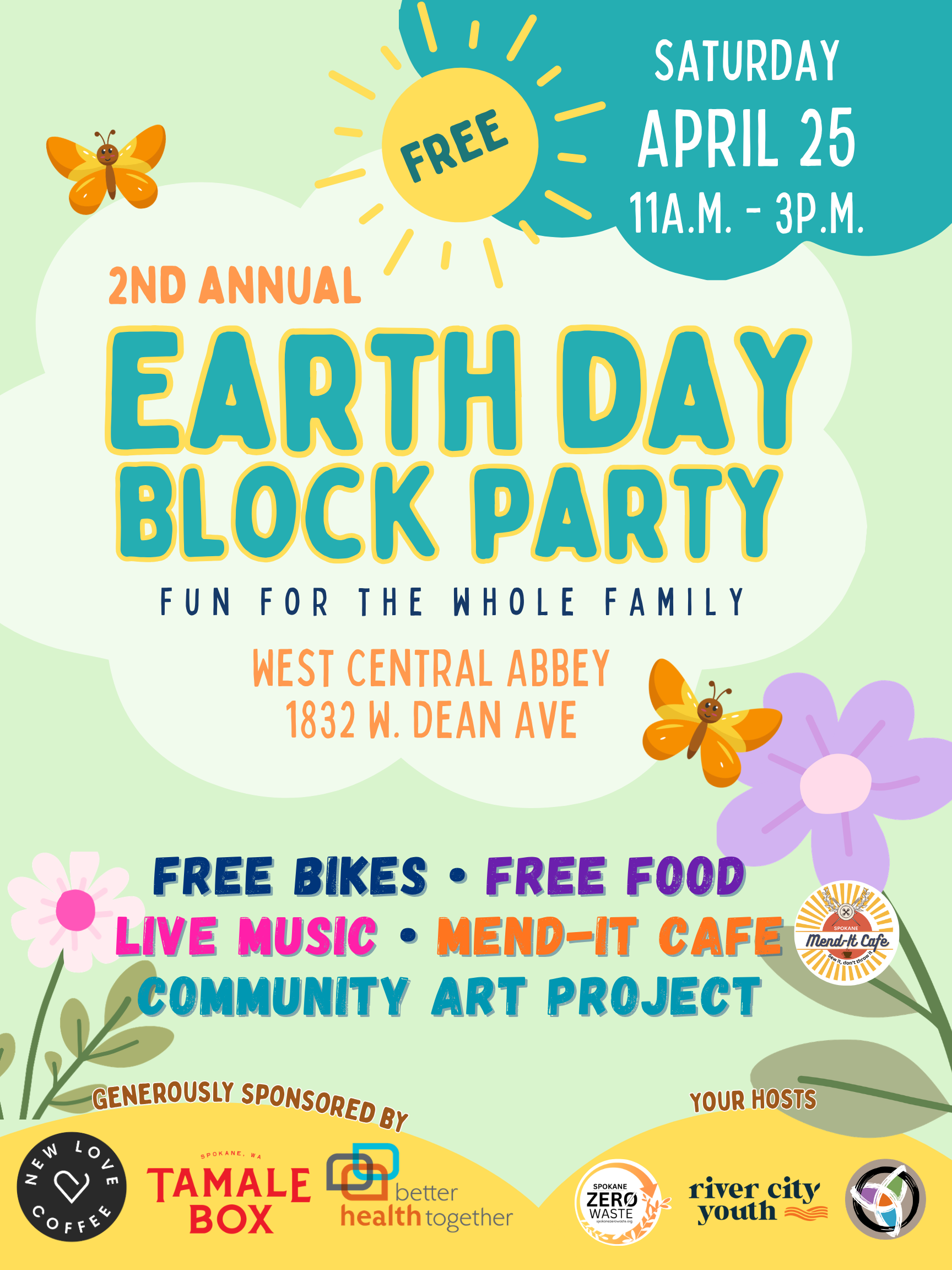 Join us for this family friendly celebration of abundance with free food and music, a native plant give-away, a bike give-away, a bike rodeo for the kiddo’s and Mend-It Cafe!